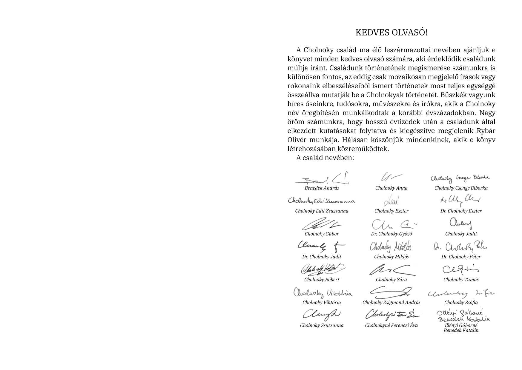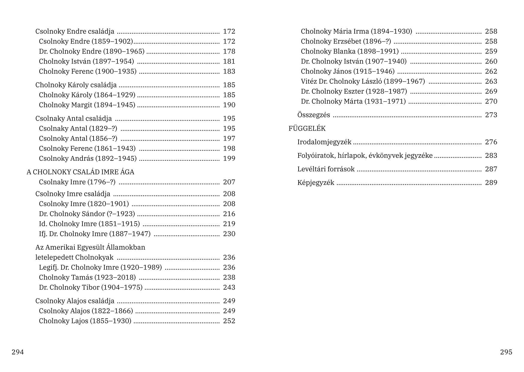 Cholnoky Béla botanikus, Cholnoky Margit operaénekes és vitéz Cholnoky László kémikus – mellett több mint félszáz családtag részletes életrajza olvasható.