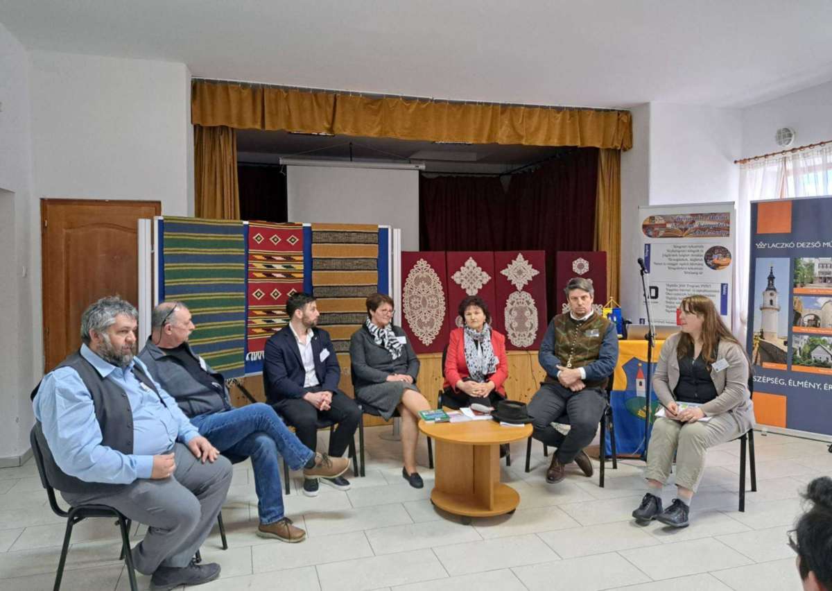 A rövid szünet után kerekasztal beszélgetésre hívtuk a régió tájházait működtető szervezetek képviselőit és az érdeklődőket. A téma a helytörténeti kutatások és értékfeltárás tapasztalatai, a napi örömök, jó példák, nehézségek megbeszélése volt. Felkért beszélgető partnerek: dr. Kandikó Csanád – Nagyvázsony, Baloghné Bertalan Katalin, a pécselyi Csipke Műhely vezetője – Mencshely, Farkas Balázsné Petrikowsky Marianna, a Veszprém megyei Népművészeti Egyesület elnöke – Pécsely, Szendrei Szilárd, a Tótvázsonyi Ifjúsági Egyesület elnöke – Tótvázsony, a beszélgetést vezette Lipeczné Karsai Henriett.
