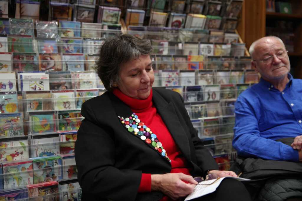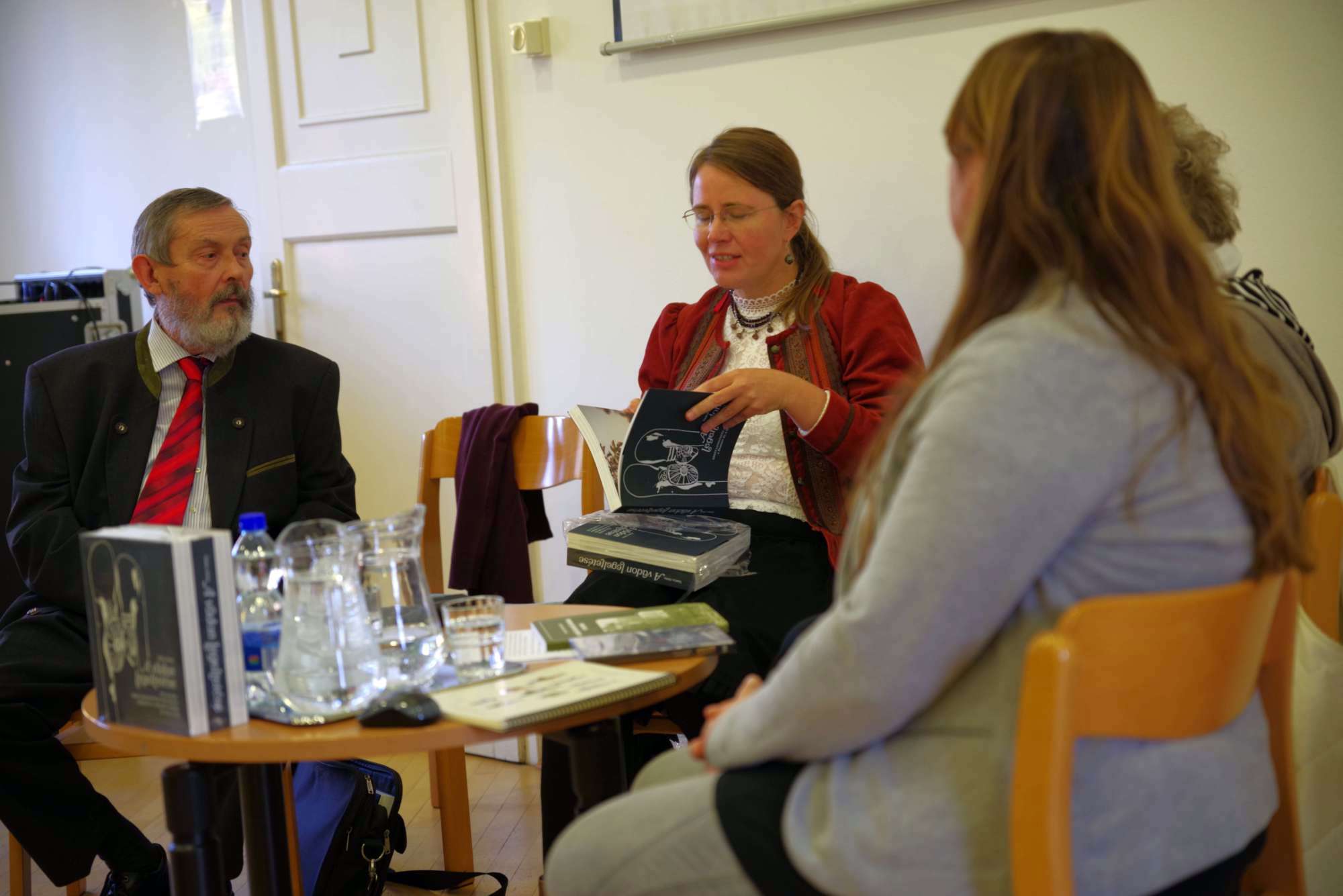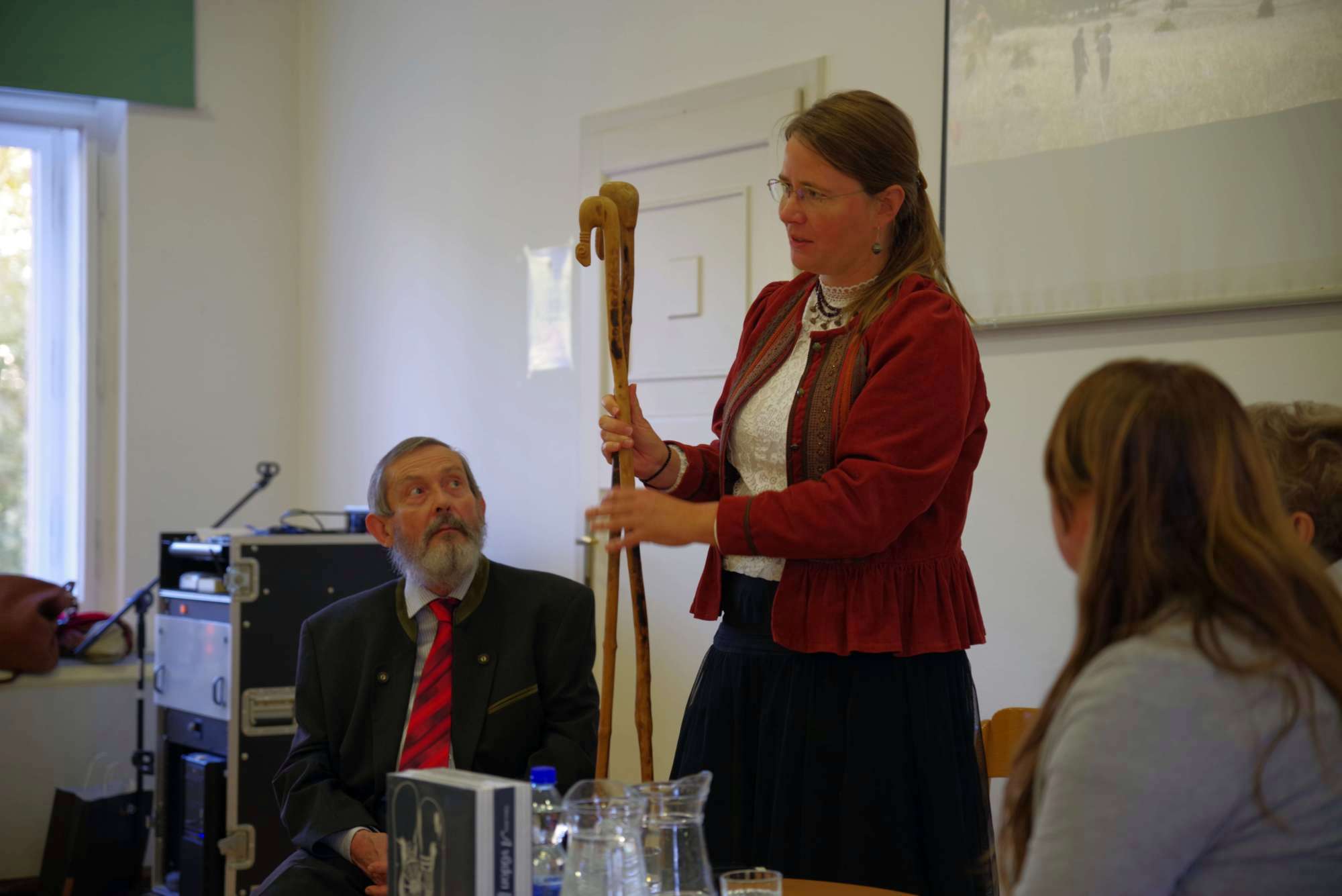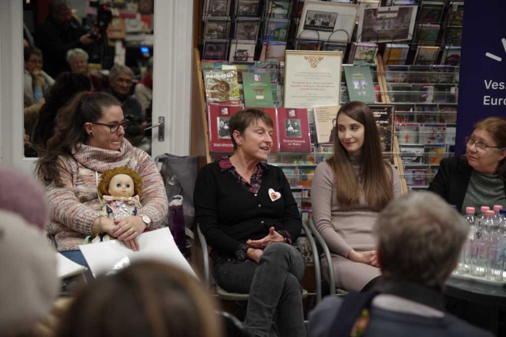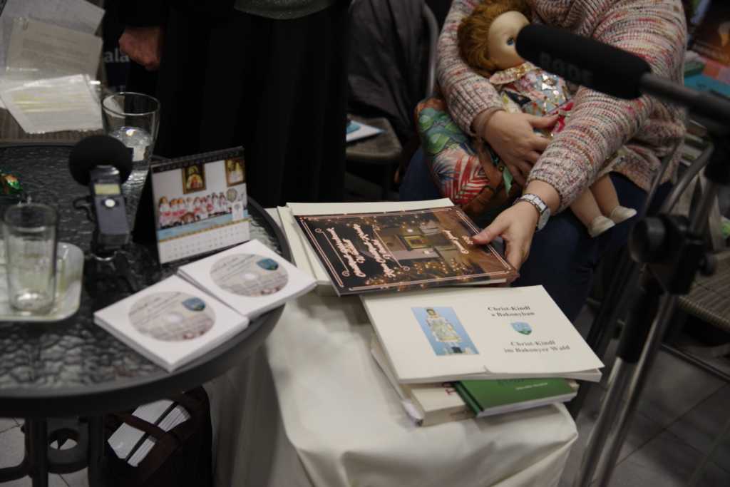 L. Karsai Henriett, a Laczkó Dezső Múzeum néprajzos munkatársa moderálásával a szentestéhez kötődő német népszokás hazai történtéről, pillanatnyi helyzetéről, jövőjéről beszélgettek a vendégek: Eich Mária nyelvtanár, a városi német önkormányzat vezetője, Schindler Mariann Christkindl-szereplő Bándról, Holczinger Szandra, aki fiatal kora ellenére Bakonyszücs helytörténeti kutatója, Arnold Mária, a herendi Christkindl-járás újjáélesztője, Heilig Zoltánné tanítónő Tótvázsonyból, ugyanonnan Molnár Ferencné Christkindl-szereplő, valamint Heilig Ferenc, a hazai németség Veszprém megyei vezetője. Elhangzott, hogy a németek által is lakott falvakban 1961-ben szűnt meg a Christkindl-járás. Betiltotta a politika, mert sváb hagyományról volt szó, méghozzá vallási alapúról. A nyolcvanas évek elejétől kezdték újra megszervezniBándon, Herenden, Kislődön, Magyarpolányban, Tótvázsonyban és még pár településen. A törekvések támogatói voltak az iskolák, Veszprémben a Botev és a Dózsa általános iskola, valamint a Lovassy gimnázium, ahol a nemzetiségi tagozat pedagógusai igyekeztek újra feltárni a hagyomány részeit, a tagozatos képzésben részt vevő diákok pedig tanították társaikat. Helyszíni bemutatót tartott a könyvszalonban a Lovassy egy Christkindl-csoportja, melyben a lányok mellett egy fiú is szerepelt, ő volt József. Ma már többnyelvű, szép kiadványok, hangzó anyagok is segítik a német–sváb néphagyományok fennmaradását. A feladat az, hogy a szülők és a pedagógusok már a kisgyermekeknél el tudják érni, ne csak a puszta szemlélődést, hanem a csoportokban való részvételt is fontosnak tartsák.
