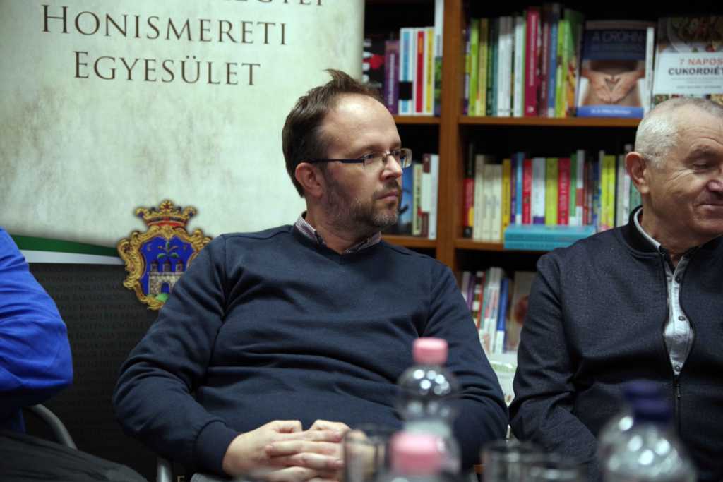 A 14. szalon vendégei Tapolcáról érkeztek, a környék településeit Lesencetomaj és Raposka polgármestere képviselte. A beszélgetést P. Miklós Tamás történész vezette. Szabóné Vörös Györgyi, a Kölcsey könyvesbolt munkatársai és a szervező egyesület nevében köszöntötte a megjelenteket. Décsey Sándorról megtudtuk, hogy 2014 óta igazgatója a tapolcai Wass Albert Könyvtárnak és Múzeumnak. Ő is tapolcai, és örömmel dolgozik a településéért minden nehézség közepette. Raposka polgármestere, Bolla Albert a hétszáz éves településről szóló könyvet hozta magával, amihez Mészáros László János, Lesencetomaj polgármestere is letette azt a kiadványt, amit a község kilencszáz éves születésnapjára jelentettek meg. Kereskedelmi forgalomban egyik kötet sem kapható, viszont ajándékba megkapta a települések összes háztartása. Tapolca járási központ, így a városi könyvtár gazdag helytörténeti gyűjteményében a városon kívül 28 környező falu emlékei és irodalma kutatható – hívta fel a figyelmet a könyvtárigazgató. Mindent gyűjtenek; a területen született kiadványokat, újságokat, dokumentumokat, de azokat is, amelyek témája Tapolca vagy a környék. Ezúttal is bebizonyosodott, hogy a települések helytörténetét feldolgozó hivatásos vagy amatőr szakemberek milyen sokat tudnak adni a „kívülálló” érdeklődőknek is. P. Miklós Tamás