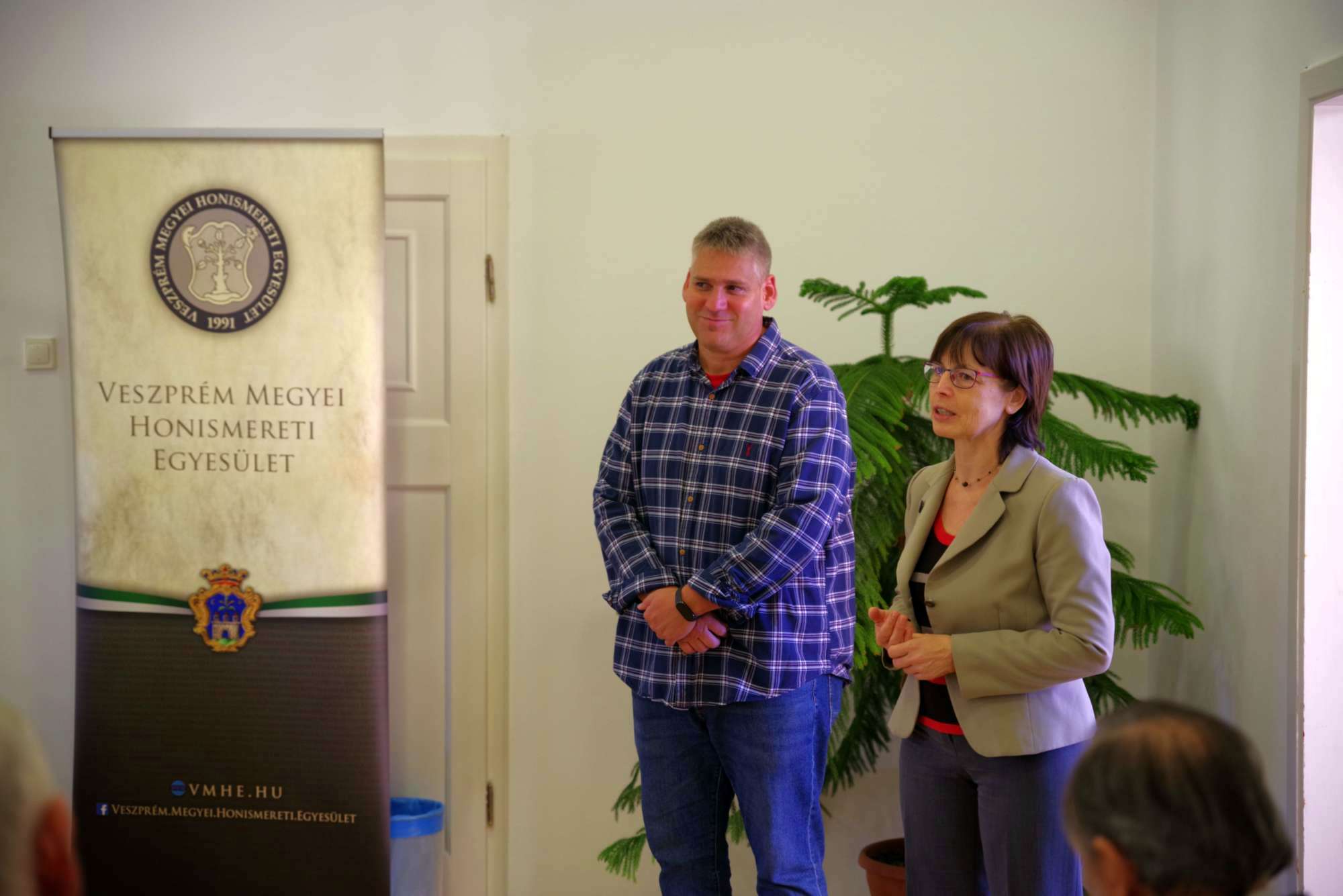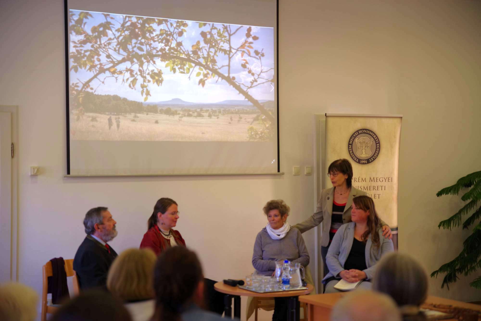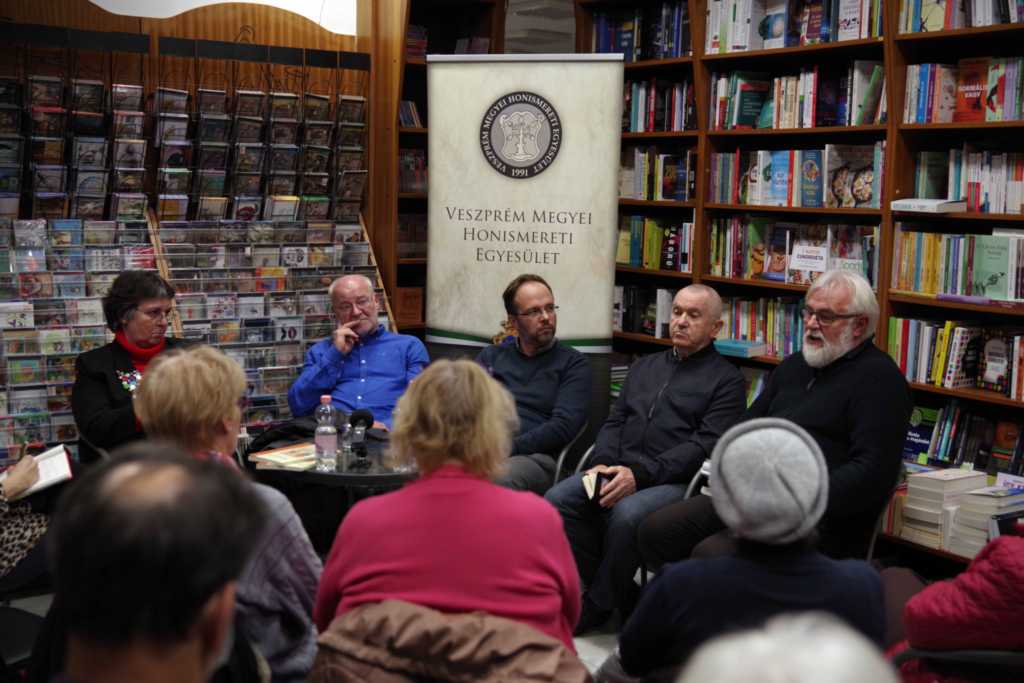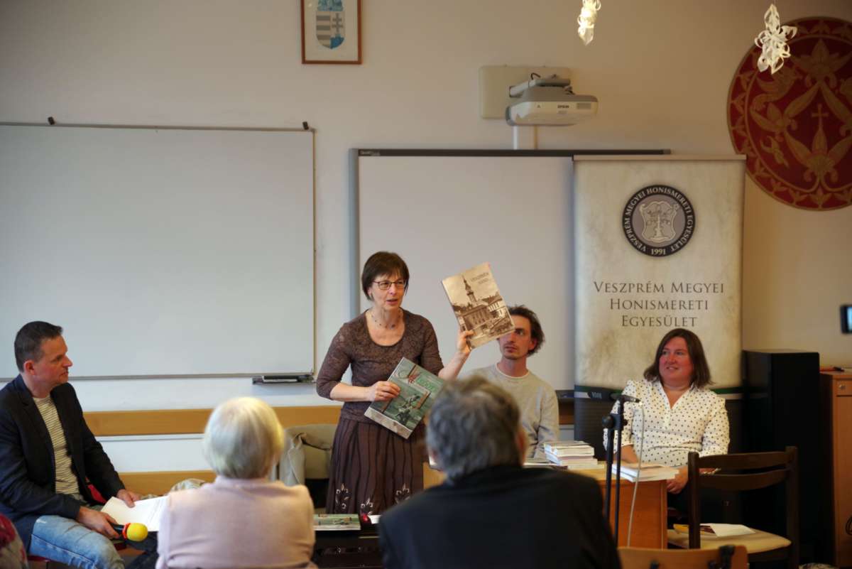 A térségeket bemutató kiadványok, kiadványcsoportok, szerkesztőségek után ezúttal a fotókról beszélgettek a vendégek, akik más-más területről érkeztek. Márkusné Vörös Hajnalkával, a Veszprém Megyei Honismereti Egyesület elnökével mint a Kaleidoszkóp sorozat szerkesztőjével, Zimonyi Mátéval, a Veszprém régi képeken közösségi oldal szerkesztőjével és Németh Andrásné Farkas Gabriella nyirádi mesterpedagógussal, a Nyirád Anno oldal szerkesztőjével Berta Barna formatervező művész, a DEMO (Design és Egészség Modell) egyesület vezetője beszélgetett. A közönséggel együtt mindannyian egyetértettek abban, hogy óriási technikai és történeti előrelépést jelent a digitális fotó, a nyomtatottat megbecsülni legalább ennyire fontos, és nem csupán azért, mert a digitális tárolás ma (még) nem biztonságos. Zimonyi Máté például elmondta, hogy 2017–18-ban a saját, pár száz darabos gyűjteményével indított Facebook-csoport mára legalább száz tagot számlál, mintegy négyezer fotóval, képeslappal és családi fotóval, melyeken szeretett városa, Veszprém múltjának részletei, emberek, foglalkozások, utcaképek láthatók ma, a XXI. századi városban. Márkusné Vörös Hajnalka is arról beszélt, hogy levéltárosként mennyire örültek, örülnek a hagyatékokkal érkező fotóanyagnak, amelyek új dimenziókkal egészítik ki az írásos anyagot. Az összegyűlt sok fotó tette lehetővé, hogy megvalósítsák Rácz Katalin, a Hét domb egyesület elnökének javaslatát, készüljenek városrészi kiadványok. Közösségi igény és az önként átadott, kölcsön adott fotók által vált lehetővé, hogy közös emlékezetünk fehér foltjaiból minél többet sikerüljön feltárni. Németh Andrásné szintén a ma is tartó folyamatról beszélt, amely révén már Nyirádon is saját internetes oldalon tájékozódhat az érdeklődő a falu múltjáról, jelenéről. A fotókban megtestesülő kutatási eredmény, akár nyomtatott, akár online formáról beszélünk, számtalan új dimenziót nyit, és nem csupán azért, mert minden kép minden nézőjének mást jelent, azon túl is, hogy például egy képeslapnak vannak közös jellemzői: a készítő nyomda, a bélyeg, a címzés. Utóbbiak is sokat változtak az idők folyamán azóta, hogy 1897-ben Bécsújhelyen megjelent az első képeslap. A beszélgetés végső konklúziója lehet: ez a gyűjtőszenvedély, szeretet és lokálpatriotizmus kell ahhoz, hogy még inkább otthonunk lehessen a hely, ahol élünk.