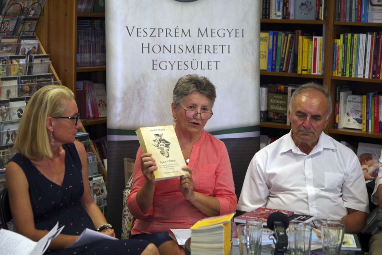 írás Ajkához kapcsolódik. Csendesné Bosits Éva, az Ajkai Századok főszerkesztője beszélt az ötven éve virágzó ajkai helytörténeti kutatásról, nyomtatott irodalomként eddig 35 szerző 76 kötete jelent meg. A nagy elődök közül kiemelte Tilhof Endrét, aki többek között megírta az 594 oldalas Ajka város általános lexikont és a város időrendbe állított történetét, az Ajkai krónikát. 2004-ben megjelent az Ajkai Századok évkönyv, amely a második számtól helytörténeti folyóiratként olvasható. Nagy Lajos szerkesztésében 2013-ig, majd 2018-tól az „új hullám” munkája nyomán. Horváth Károly ny. bányamérnök, az Ajkai Bányászati Múzeum vezetője, a helytörténeti klub tagja érdekes bányatörténeti sétákat vezet és szívügye a bányászmúlt megőrzése. Ajkának sok bányászati emléke van, kezdve a városcímerrel, amelyben szerepel Szent Borbála, a bányászok védőszentje is. Beszélt a sok kapcsolatról, ami a bánya révén Ajkát és Veszprémet összeköti; például a szenvedélyes bányász és nagyra becsült igazgató, Riethmüller Ármin (akiről Ármin aknát elnevezték) sírja Veszprémben, az Alsóvárosi temetőben található. Áment Márton ny. vegyészmérnök főleg