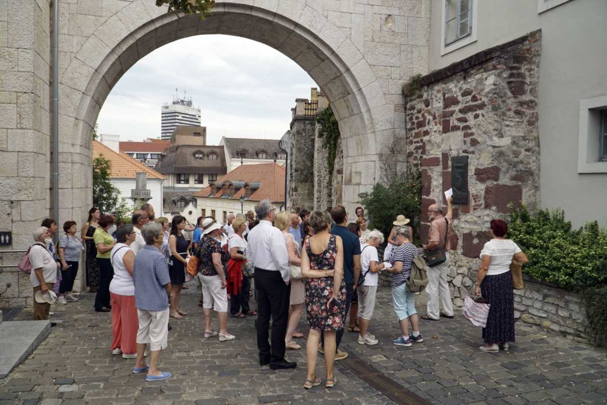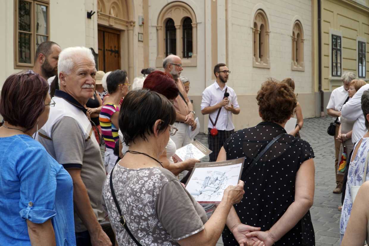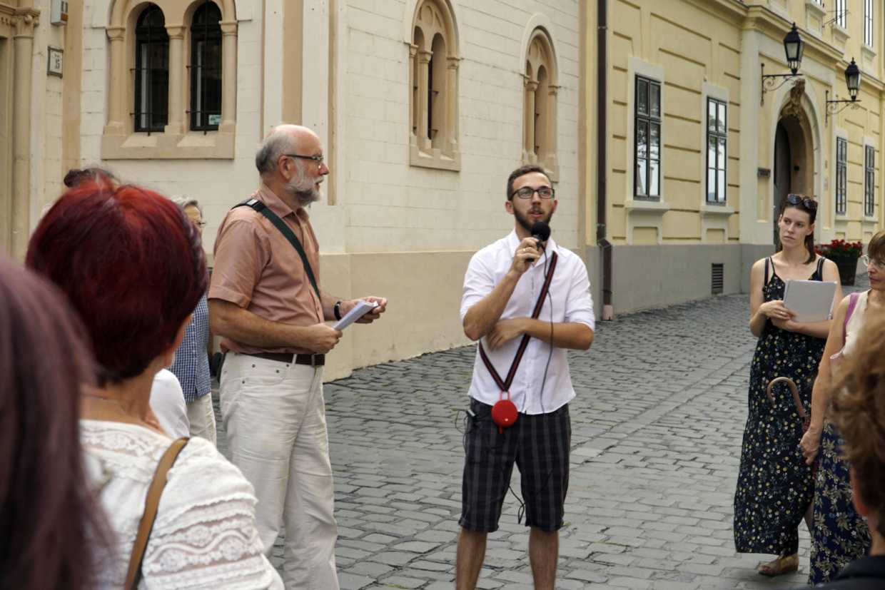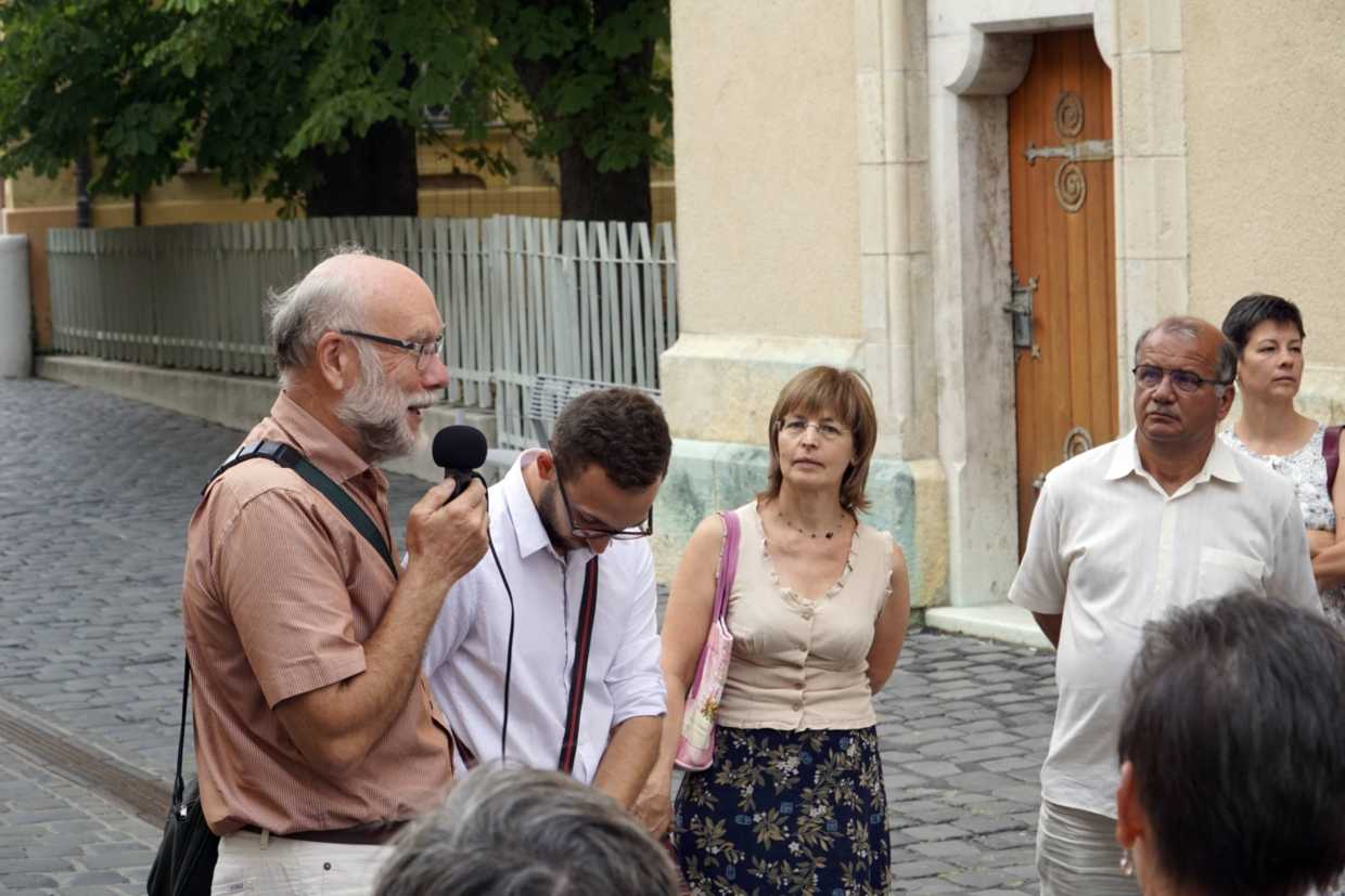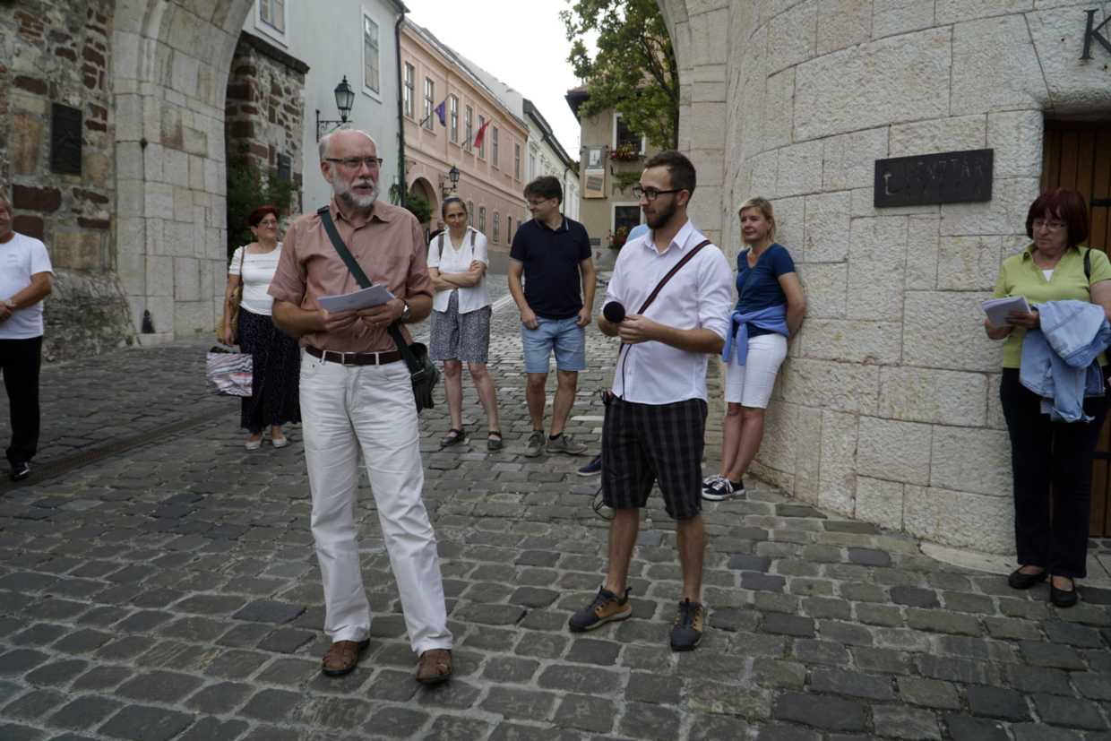 A sétát vezeti: Pátkai Ádám régész, Laczkó Dezső Múzeum és Sebő József író, tanár, a Veszprém Megyei Irodaromtörténeti Társaság elnöke