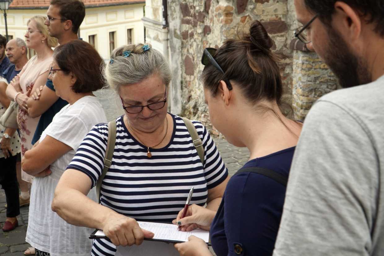 A sétát vezeti: Márkusné Vörös Hajnalka főlevéltáros, a VMHE elnöke
