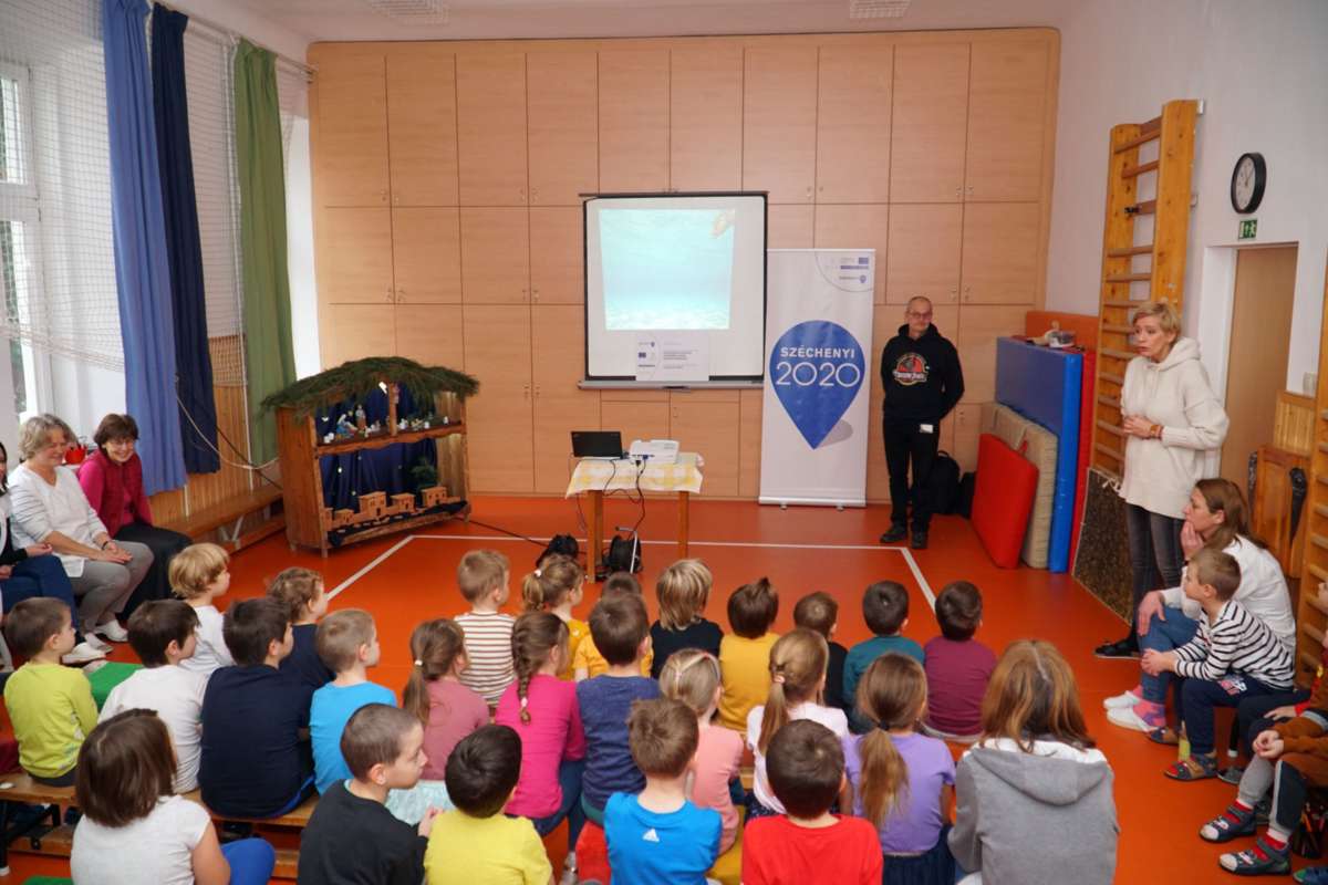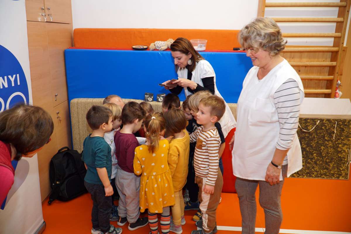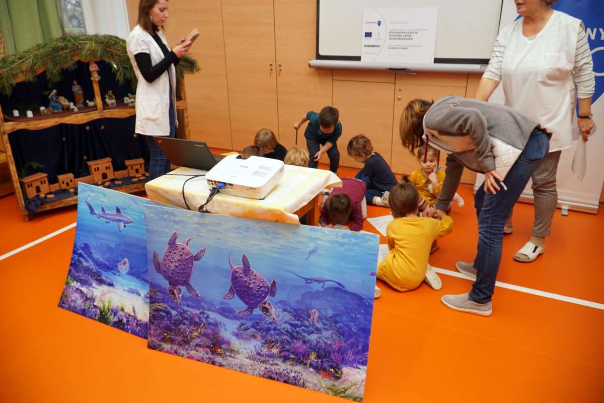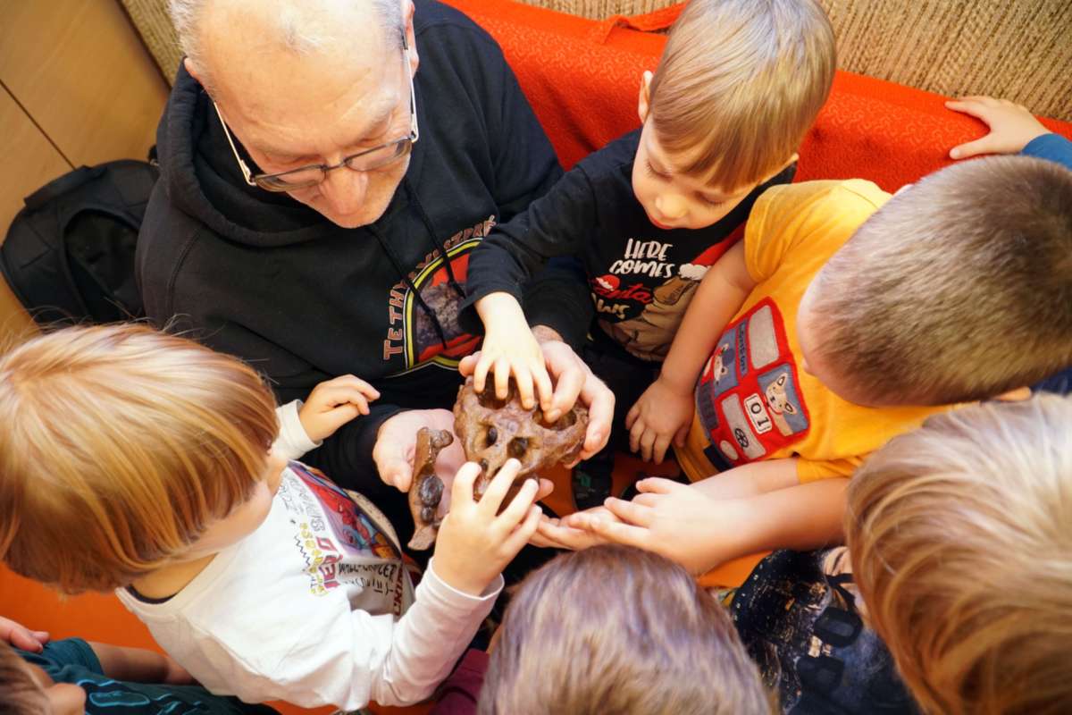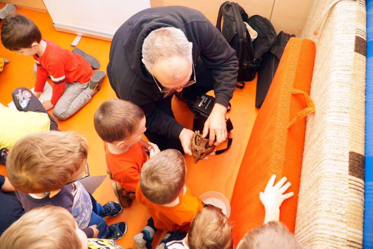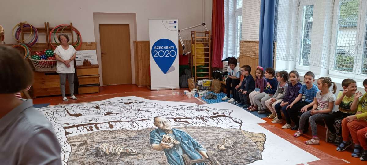 Az óvodás gyerekeknek egy érzékenyítő, ismeretterjesztő előadást tartottunk, amely nagyon tetszett nekik, majd egy interaktív foglalkozás keretében megismerkedhettek a Palo, vagyis a kavicsfogú koponyamásolatával is.