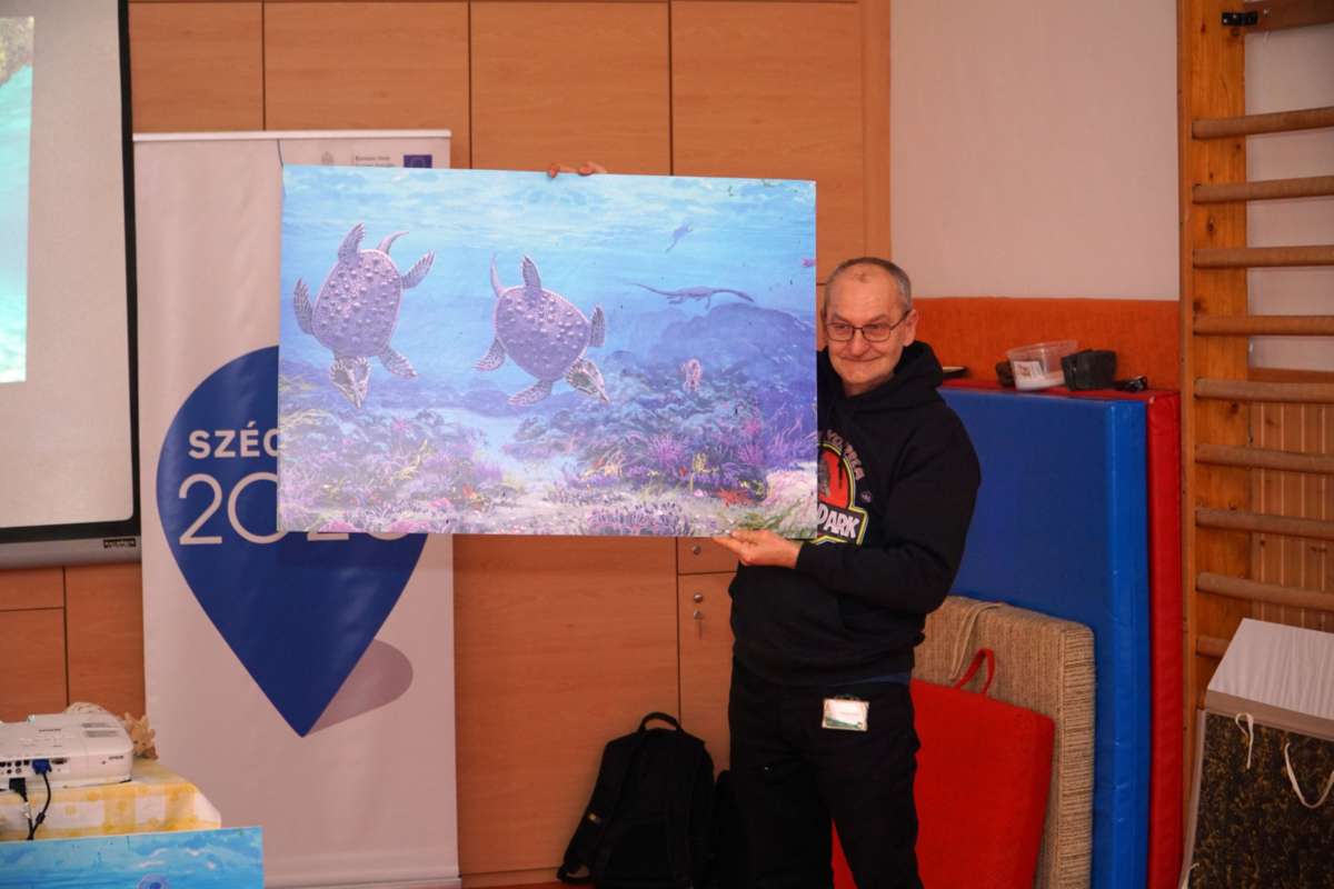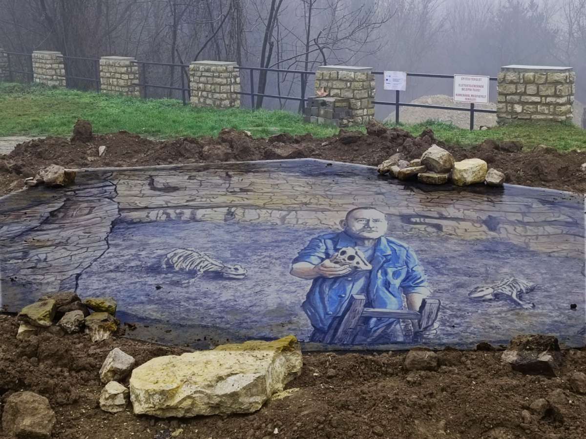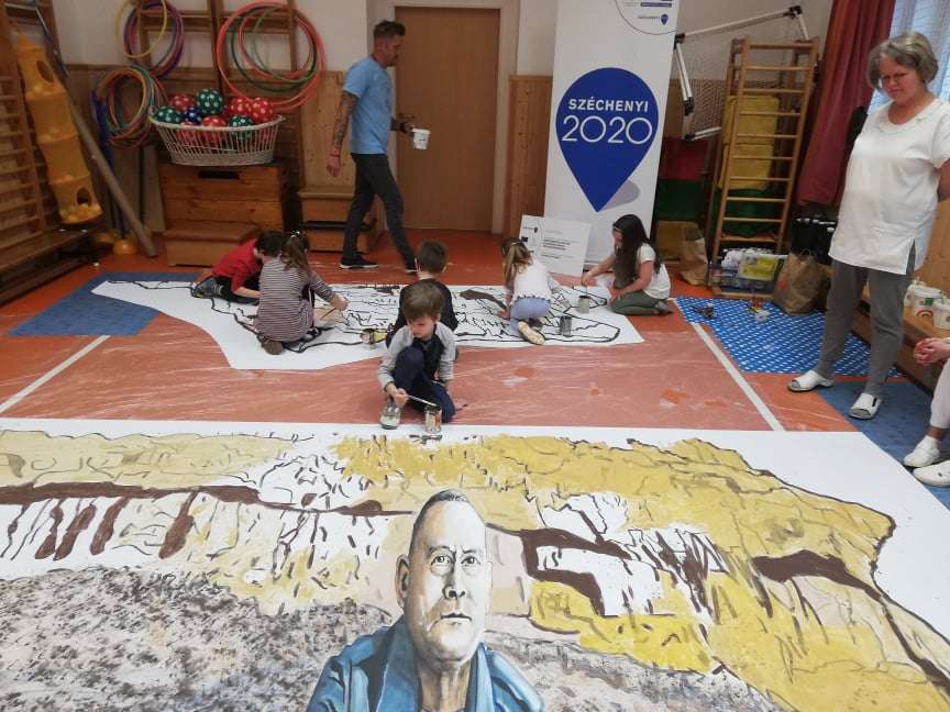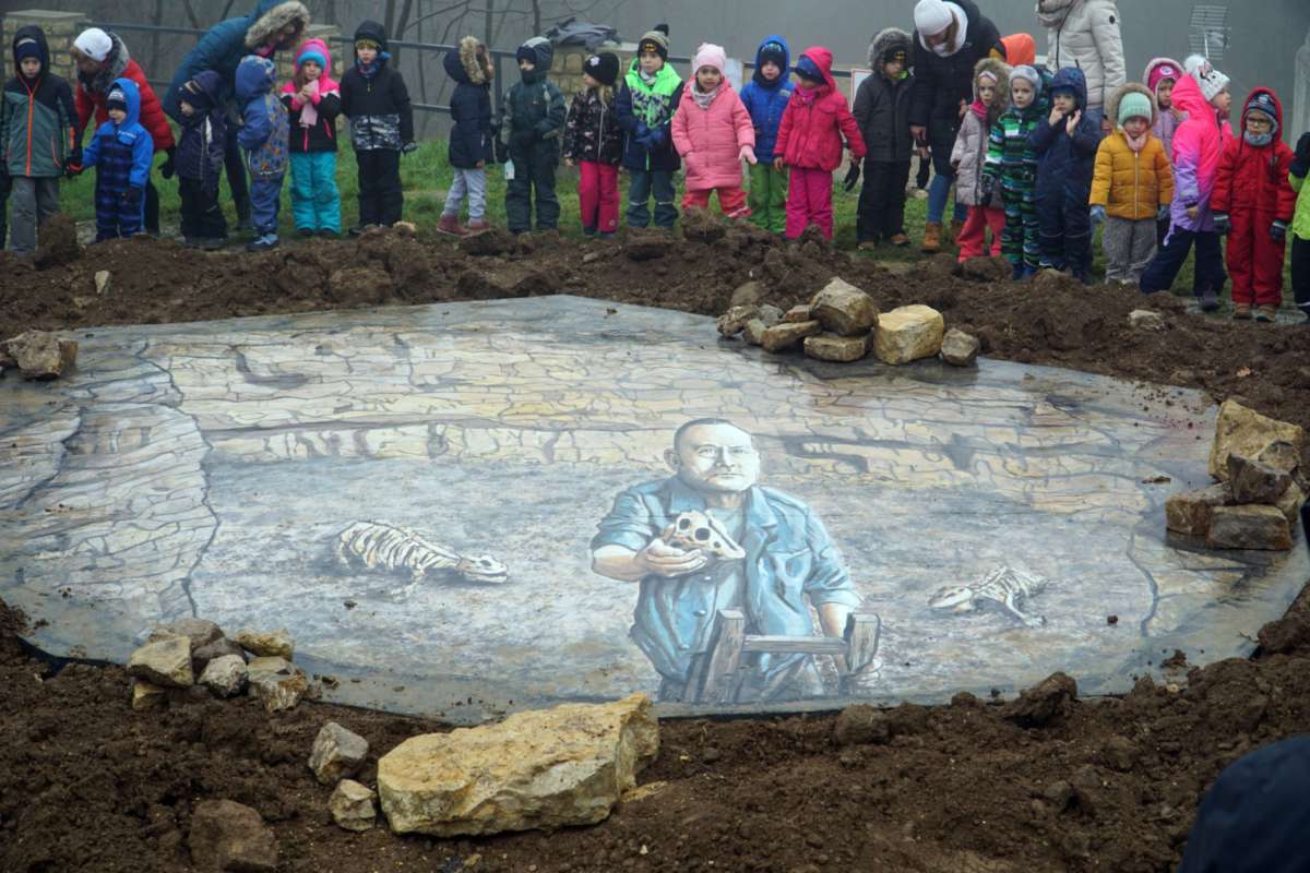 Ennek keretében Gyulai Attila festőművész alkotta meg a Szt. Margit Katolikus Óvoda gyerekeivel a kavicsfogú álteknős megtalálásának elképzelt pillanatát, amit Laczkó Dezső kiemeli nyugvóhelyéről.