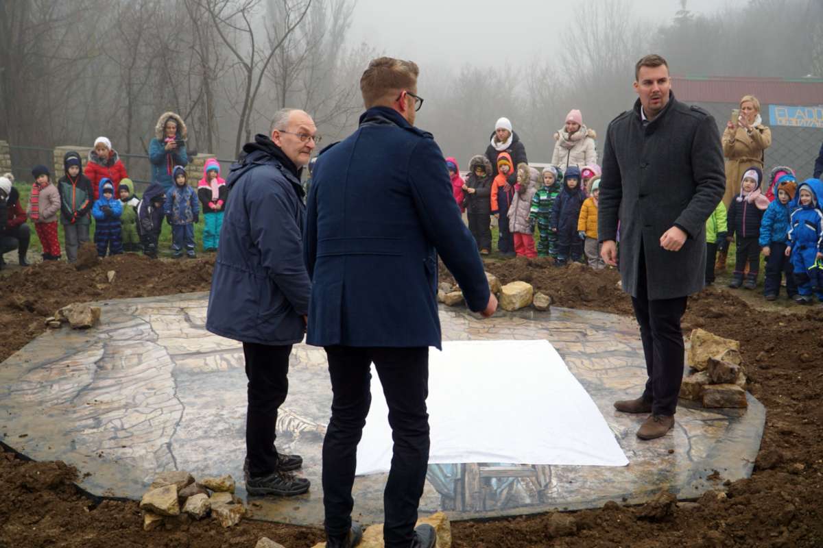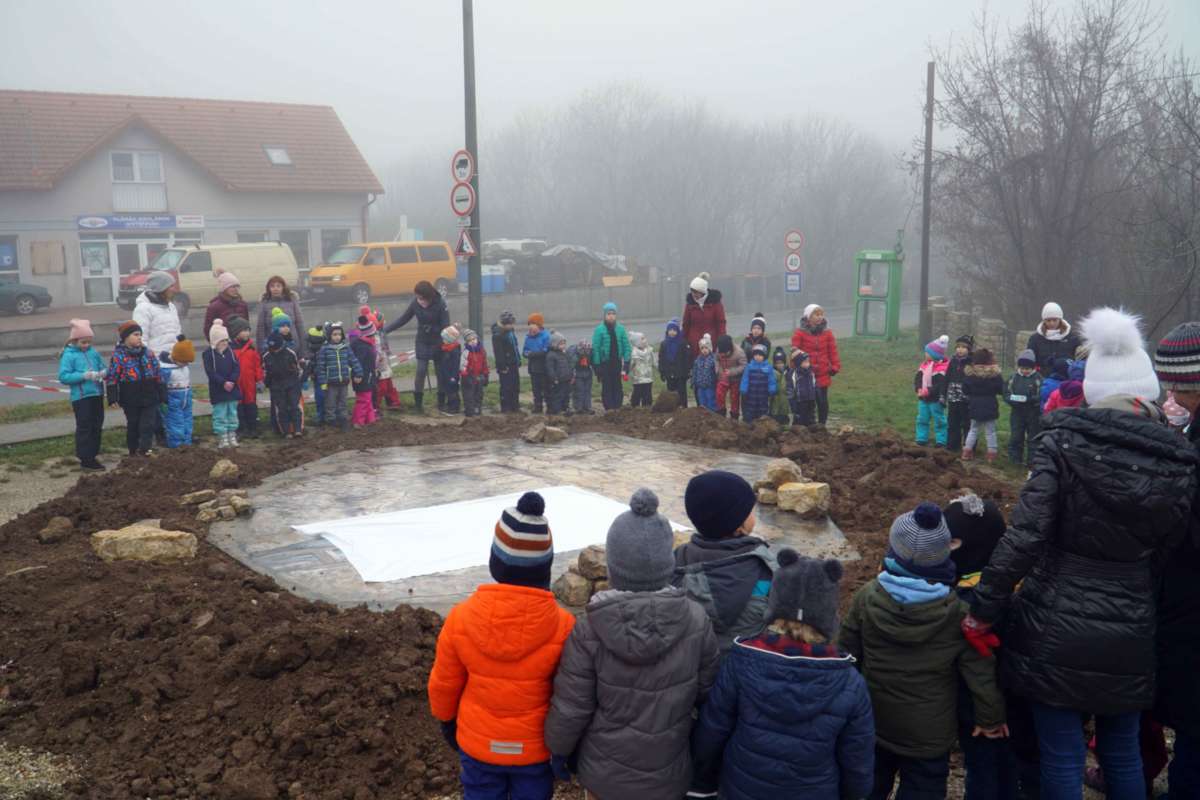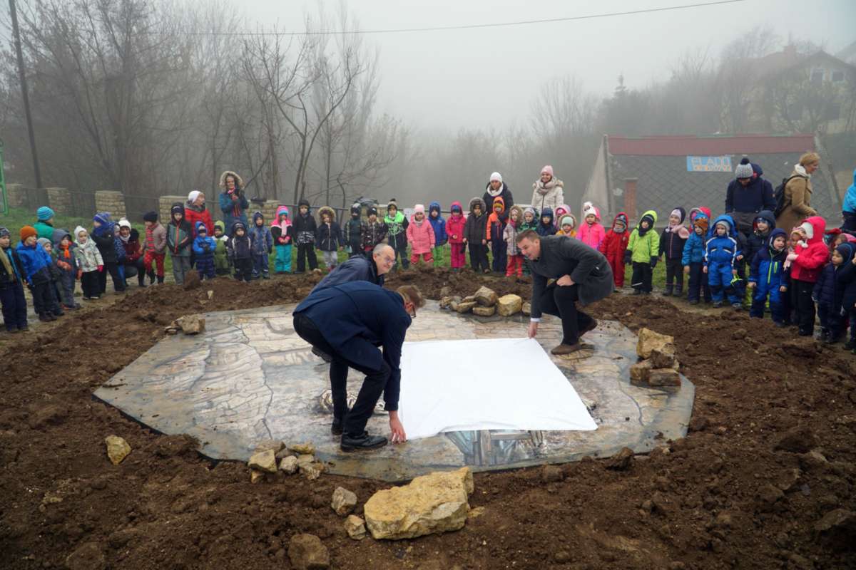 Ennek keretében Gyulai Attila festőművész alkotta meg a Szt. Margit Katolikus Óvoda gyerekeivel a kavicsfogú álteknős megtalálásának elképzelt pillanatát, amit Laczkó Dezső kiemeli nyugvóhelyéről.