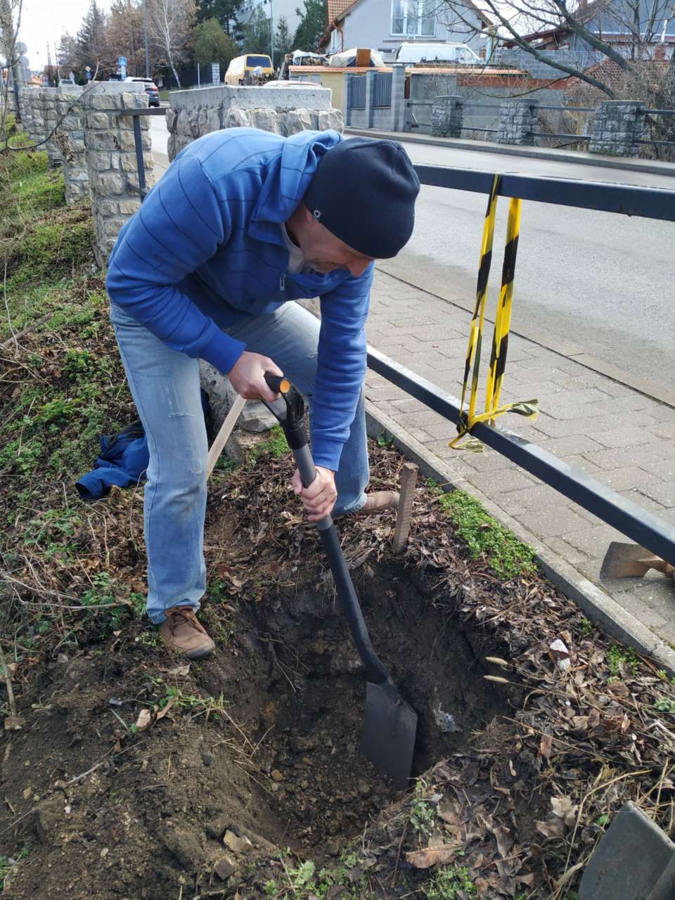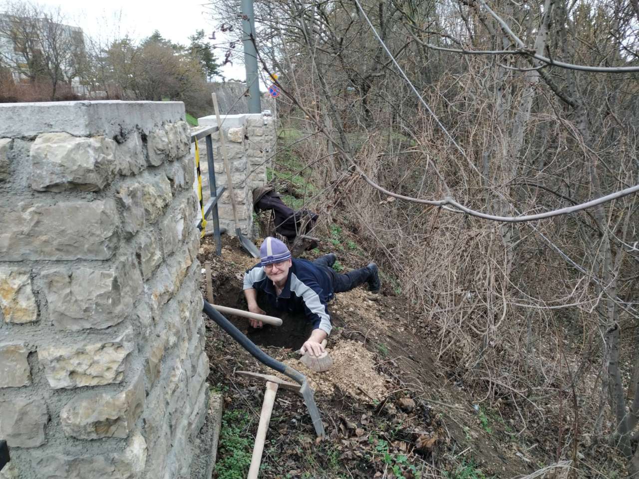 A veszprémi Tethys-alagút megvilágításához egy önálló kandeláberen elhelyezett napelem telepítéséhez egyesületünk két tagja, Szelestey Polgár Attila és Bontó László, társadalmi munkában ásott gödröt az alapozáshoz. Ebbe a Gátiba szakemberei állították fel az oszlopot, amelyen a napelem majd termeli a Halagút megvilágításához szükséges áramot.