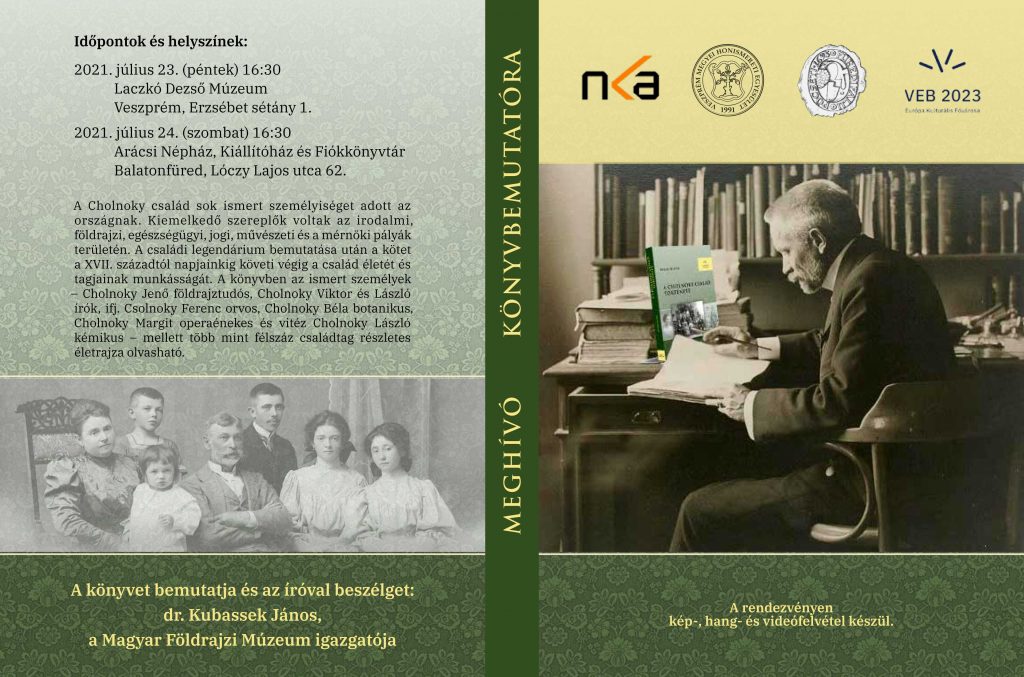 A Veszprém-Balaton 2023 Európa Kulturális Fővárosa program, a Laczkó Dezső Múzeum és a Veszprém Megyei Honismereti Egyesület nevében meghívjuk a Cholnoky-projekt sajtótájékoztatójára és könyvbemutató eseményére.