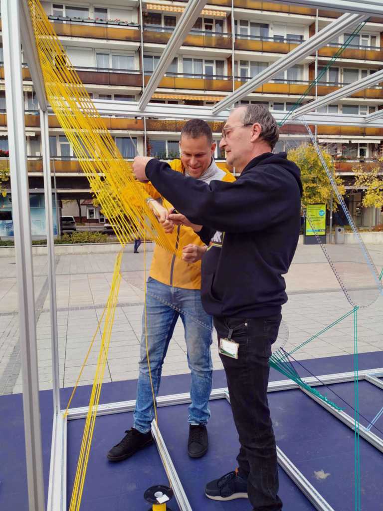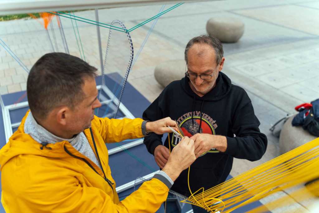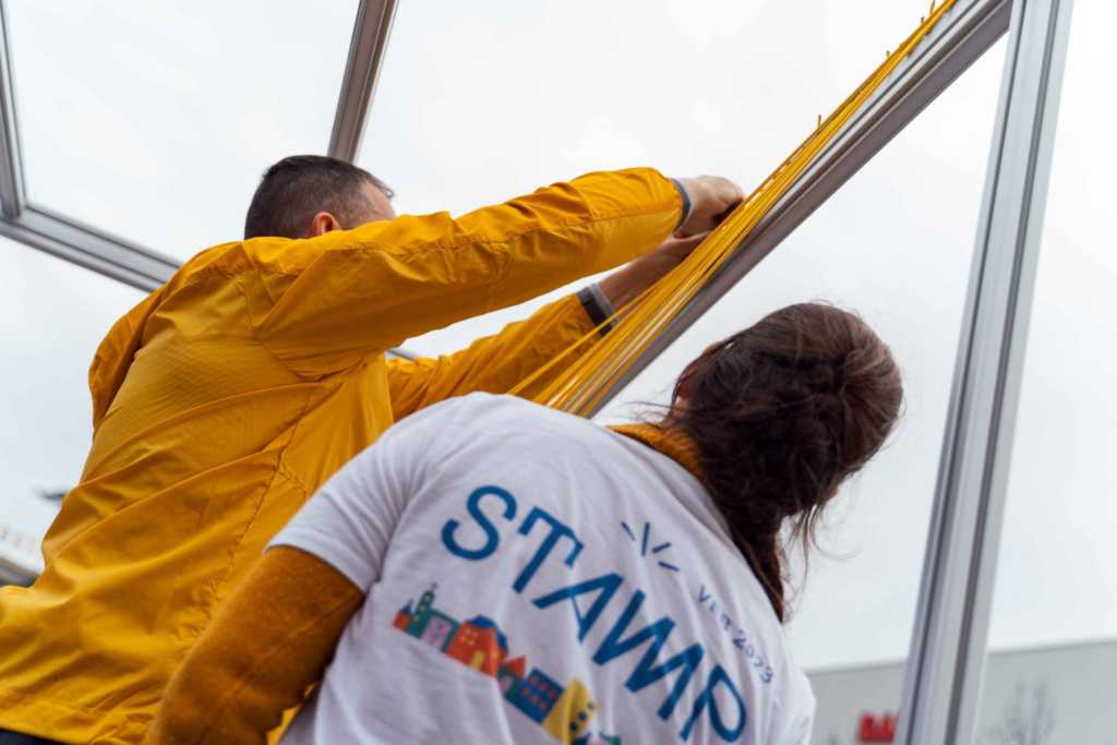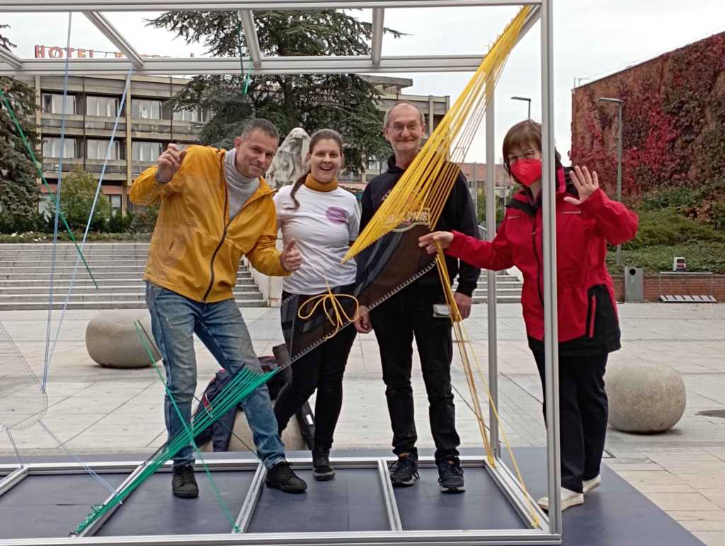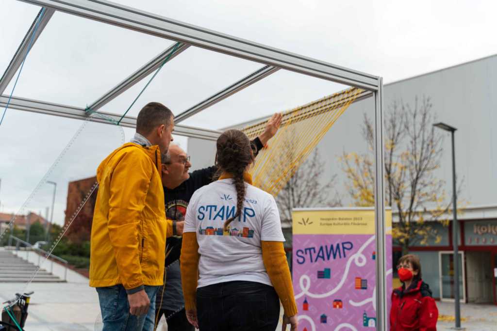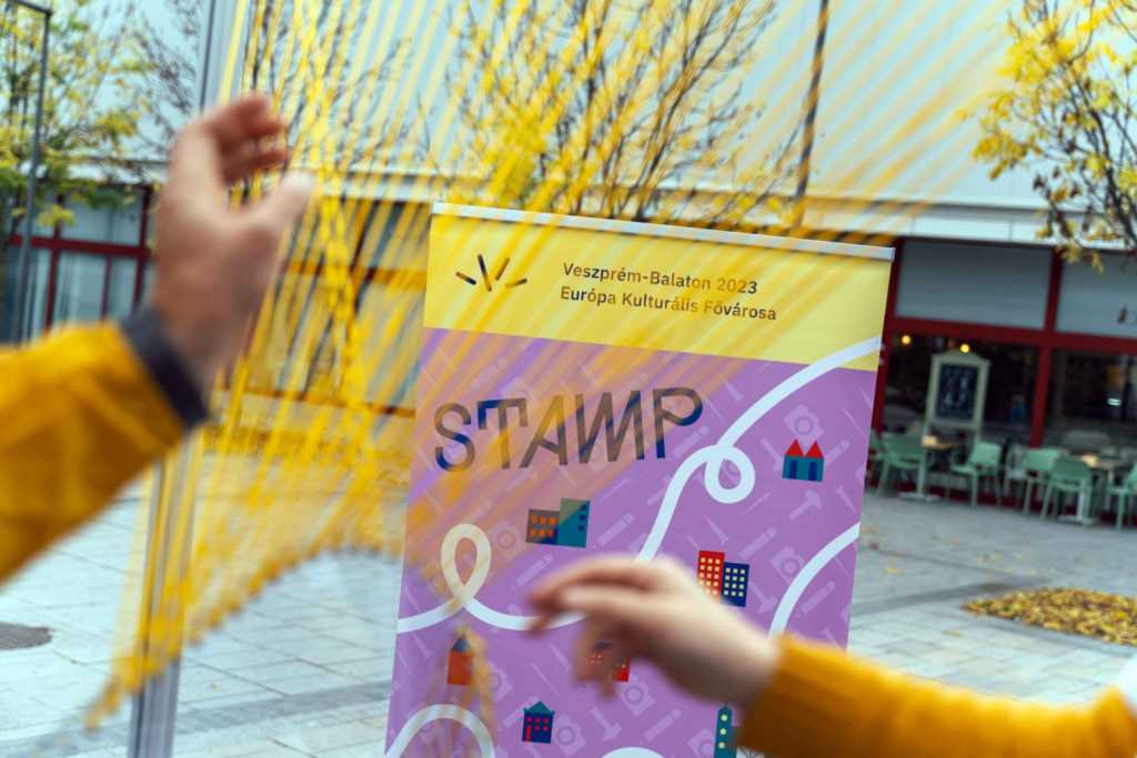 A Veszprém-Balaton 2023 Európa Kulturális Fővárosa meghívására, a 100 napos "EKF várás" keretében ma délután felkötöztük a mi zsinórjainkat a STAMP by DEMO képviselőivel: Berta-Szénási Panna és Barna Berta. Egyesületünk képviseletében Hajnalka Márkusné Vörös és Laci Bonty volt az elkövető