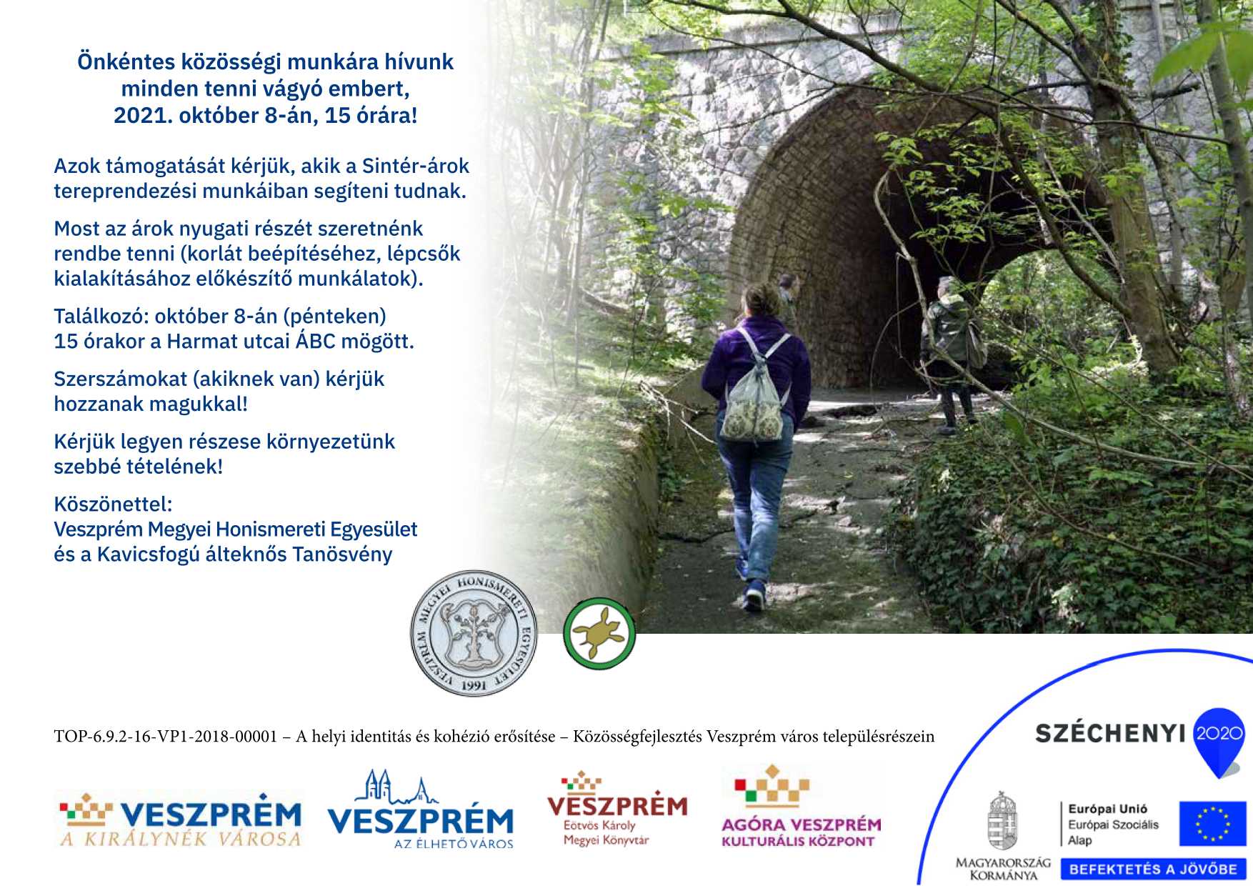 A programot a TOP-6.9.2-16-VP1-2018-00001 – A helyi identitás és kohézió erősítése – Közösségfejlesztés Veszprém város településrészein támogatásával hajtjuk végre.