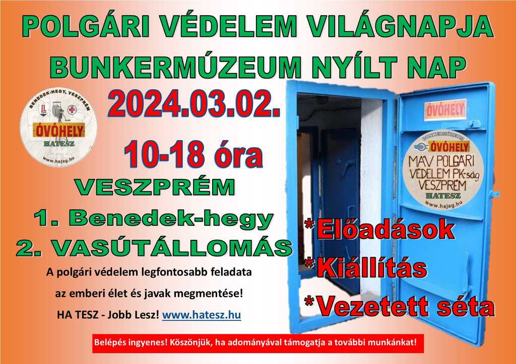 A 2024. évi Polgári Védelem Világnapja alkalmából a HATESZ felkérésére mi is részt vettünk a már hagyományos turisztikai szezonnyitó bunkermúzeumi rendezvényeken a Benedek-hegy gyomrában és a MÁV pályaudvaron lévő egykori óvóhelyeken.